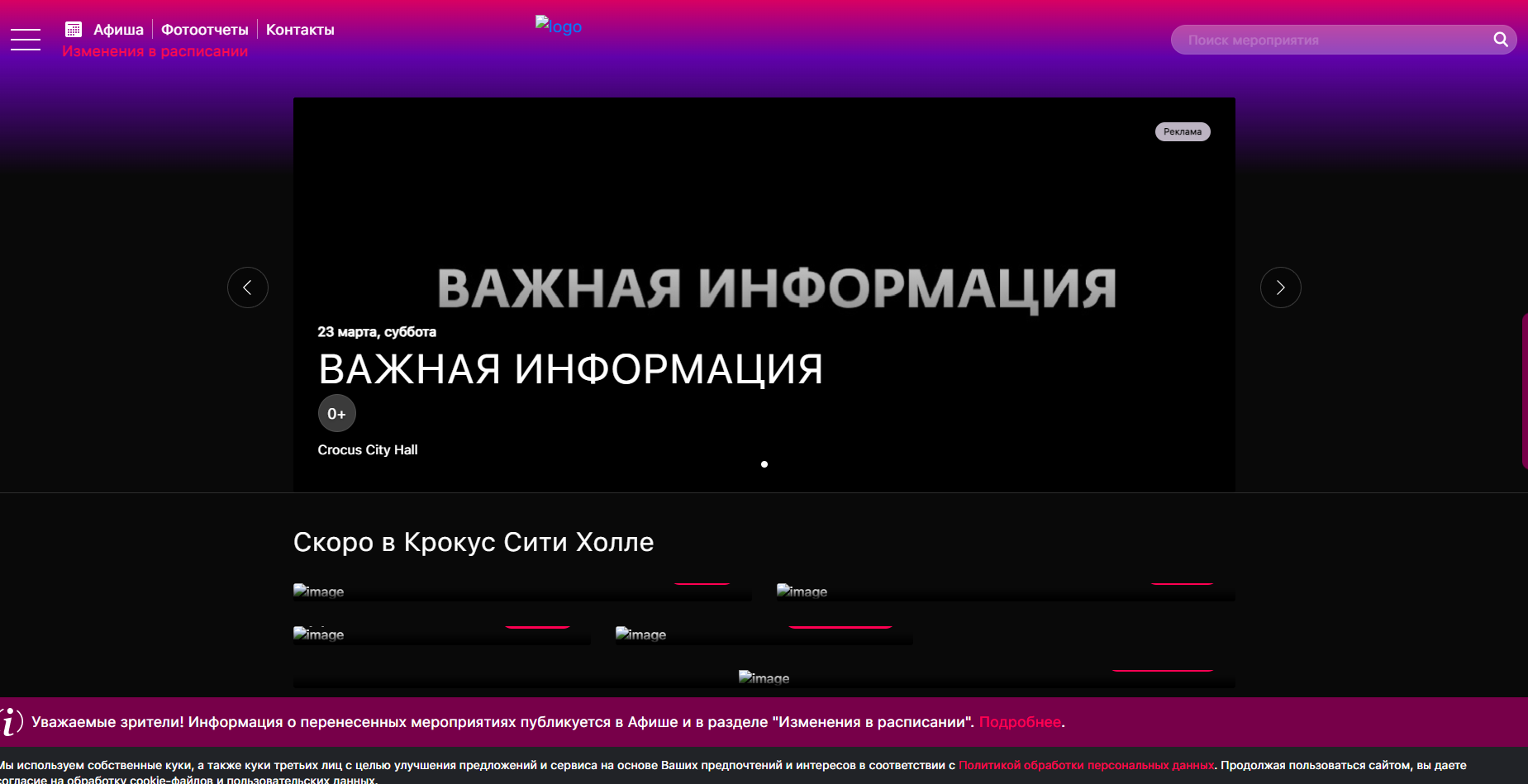 크로커스 시티홀의 홈페이지 주소는 https://crocus-hall.ru로 현재는 접속하기 힘듭니다.