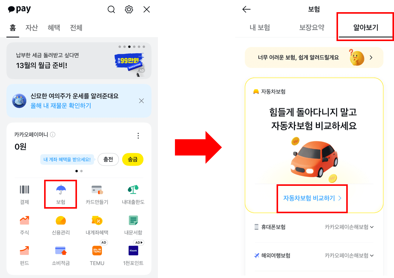 카카오페이 자동차보험 비교