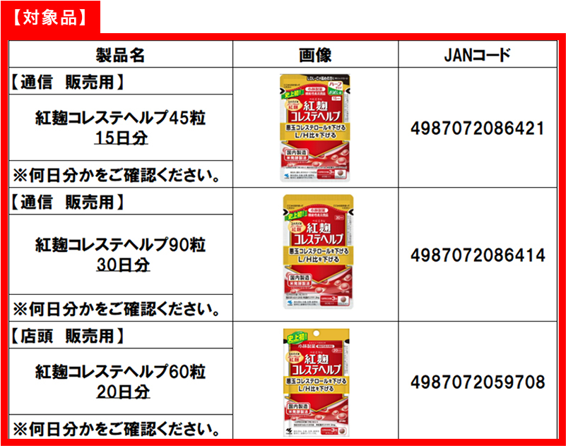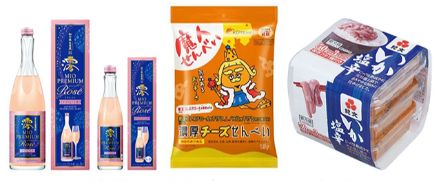 붉은 누룩 (紅麹) - 니혼슈 미오 프리미엄, 제로 플러스 치즈 센베이, 기분 오징어 젓갈 (고바야시 제약)